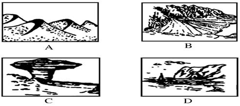 本题解析:试题分析: A图为沙丘,为典型的风力沉积作用形成的地貌。