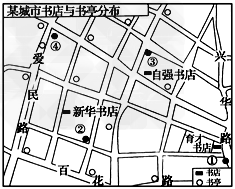 4、单选题 读下图某城市书店与书亭分布图,回答1~3题。