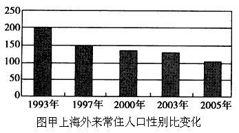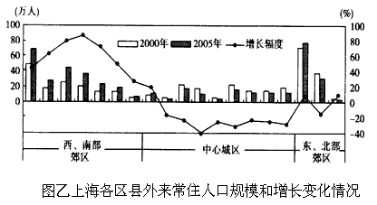 概述图甲、图乙所反映的上海外来常住人口变化情况,并分析其积极意义。