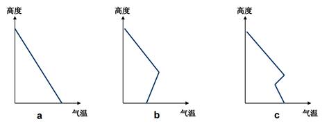 【小题1】图中a表示辐射逆温形成前的气温垂直分布,一般出现在午后;b表示辐射逆温形成后,一般出现在黎明以前。则c出现的时间最可能是