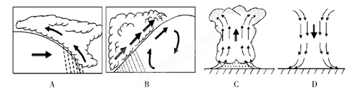 (1) 从气流状况看:C为 ;从气压分布状况看:D为 。