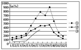 (3)请在图Ⅱ上绘出图Ⅰ中点③所在断面1~7月的流量变化趋势曲线。(8分)