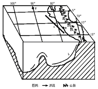 【小题3】该地区为南美洲西海岸,沿岸洋流a是秘鲁寒流,该洋流自东南向西北流;;b洋流为上升补偿流。
