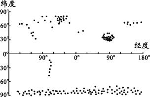 4、单选题 下图中黑点表示某资源的主要分布区。读图回答问题。