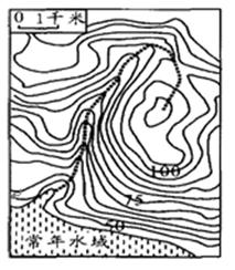 点评:本题难度中等,解答本题需注意以下几点:(1)图中等压距为4百帕。(2)陆地的比热容小,气温日较差大于海洋。(3)锋面一般形成于地面气旋的低压槽中,锋线与槽线重合。(4)气旋东部气流来自较低的纬度,气温较高,当它向高纬移动时,遇到较高纬度的冷空气就形成了暖锋。同样的,气旋西部气流是来自高纬度地区,向低纬运动时会遇到较低纬度的暖空气而形成冷锋,即“东暖西冷”。