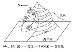 1.若①为落叶阔叶林带,则该山可能位于2.该山地北坡的垂直自然带比南坡完整且高的原因是3.若CD一线的年降雪量等于年消融量,B、C两点最大的温差为28.80C,则该山地的海拔最接近