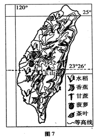 (3)根据图7信息简要说明台湾农业分布特点。(3分)