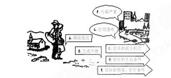 (2)图中字母代表的内容,对人口迁移而言,属于城市化发展的拉力因素是_________。(填字母) (2分)