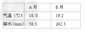 (3)B最可能是1月还是7月的气温降水资料,分析甲地气温年较差小和降水量差异大的原因。