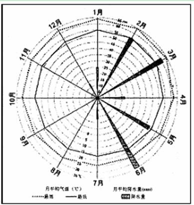 1、单选题 图3表示某岛屿的气候状况,读图回答第8、9题。
