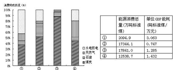 1、单选题  下列图表为我国四个省区2010年能源消费情况,据此完成下列各题。