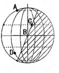小题3:全球正午太阳高度的分布规律:自太阳直射点向南北两侧递减,图示太阳直射点位于北回归线,故离北回归线越近,正午太阳高度越大,离北回归线越远,正午太阳高度越小,故D点的正午太阳高度越小。