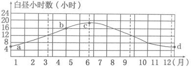 1.该地一年中白昼最大差值约2.图中曲线a→b→c→d点的过程,经历了