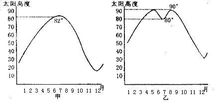5、单选题 下图为甲乙两地一年中正午太阳高度变化曲线示意图,读图回答下题。