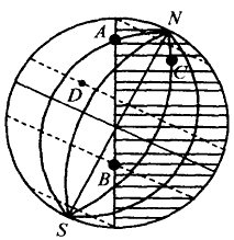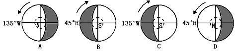 (2)下面四幅图与上图对应的太阳光照图 正确的是(图中阴影部分表示黑夜)