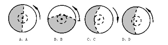 5、单选题  读下图,若该地太阳落山时间大约为18:00,图中①至④示意此地该日昼夜长短状况的是