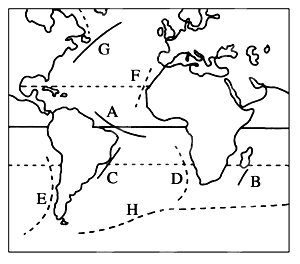 (2)从图示来看,世界洋流的分布规律是:中低纬度海区形成以___________为中心的大洋环流。北半球中高纬度海区形成以________为中心的大洋环流。南半球40°附近海域形成环球性________。