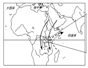 材料二 图为非洲及周边地区略图,图上标出了1月和7月的风向,右为非洲东部部分地区的地形和构造剖面示意图。