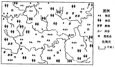 1、单选题 下图为“我国50°N附近某牧区的土地利用图”。该区域最高海拔l480米,区内最大高差小于300米。回答下列问题。