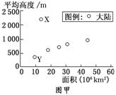 材料2:各大陆的面积与平均海拔高度关系示意图(图甲)。