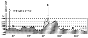 材料4:读亚洲大陆沿30°N的地形剖面图
