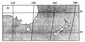 【小题1】根据图中经纬度可知,①位于南半球热带大西洋上,②位于南半球温带太平洋上,③位于南半球(亚)寒带印度洋上,④位于南半球热带和温带太平洋上。