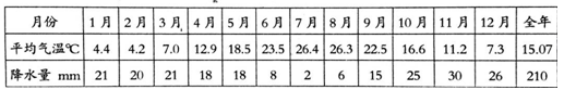 材料二:甲是里海沿岸的重要城市,夏季常有微弱海风。下表为甲城气候资料。