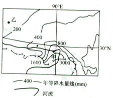 1.结合图示的地理位置判断,甲位于雅鲁藏布江谷地,迎受印度洋的西南季风,故多地形雨,降水量丰富。