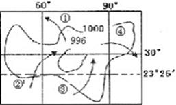 4、单选题 读我国某时刻海平面等压线分布图,可知此时