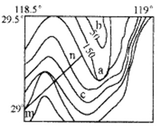 4、单选题 读“我国某山地等高线图”,回答问题。