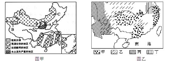 (2)图甲中A地区存在的主要环境问题是 ,形成原因是 。(3分)