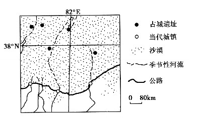 本题考查区域可持续发展的问题。根据图示地区的经纬度判断该地位于我国西北地区,图示区域位于山麓绿洲,城镇面临的主要环境问题是土地荒漠化,导致绿洲退化,遭受风沙侵袭。所以本题选择B选项。