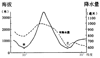 【小题1】根据图中纬度分布可知,甲为南坡,乙为北坡,北坡随高度上升,降水量增加,C、D错;南坡大致在2500米以上,降水量随高度上升而减少,故选B项。