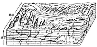 1.依图可知,河流L在该地地貌形成中所起的主要作用是:2.构成该地貌岩体的岩石主要为