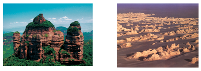 小题1:形成图示雅丹地貌和丹霞地貌的主要外力作用分别为(?)