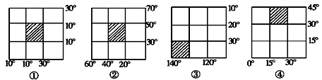 5、单选题 比较下列四幅经纬网图,其中阴影区域的实际面积最大的是