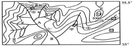 2、综合题 下图是我国东部某沿海等高线分布图,据此完成下列要求。(16分)