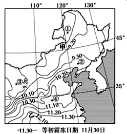 【小题2】关于该区域等初霜冻日期线的分布特征及主要影响因素,说法正确的是( )