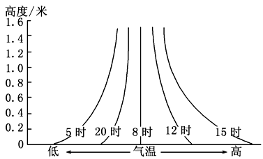 1、单选题 下图为北半球中纬度某地某日5次观测到的近地面气温垂直分布示意图。当日天气晴朗,日出时间为5时。读图回答下面各小题。