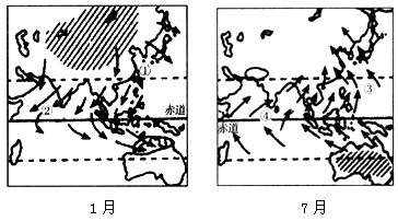 4、综合题 读下图“亚洲东部地区气压分布图(单位:百帕)”,回答下列问题。