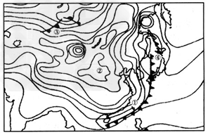 2、单选题 下图是2014年2月14日我国部分地区海平面等压线分布图。据此完成下列各题。