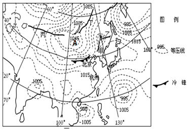 (3)读图,杭州和北京两城市比较,北京的等压线密集,说明水平气压梯度力大,所以风力较大的是北京。强冷空气影响,未来几天,北京可能出现寒潮天气。