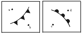 ①有可能形成降水天气的有a处和d处②c比d气温高气压低③b处风向是偏南风④吹偏北风的有a、d