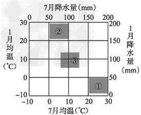 D.①、②、③气候类型夏季均为高温少雨