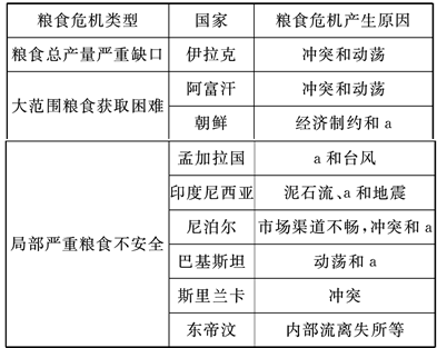 5、单选题 2011年10月16日为世界粮食日。读联合国粮农组织网站公布的“处于粮食危机之中的亚洲国家表”,完成题。