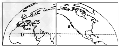 (2)读材料二,该气候类型的名称是____________,其分布的规律是___________________________________________。在材料三的ABCD四地中,属于这种气候类型的是______。