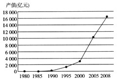 3、多选题 2010年是深圳特区成立30周年,30年来深圳工业发展和城市建设取得了巨大成就。下图为1980-2008年深圳工业总产值的增长示意图。读图回答1~3题。