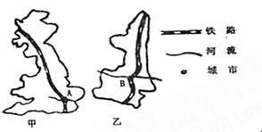 (5)乙图中B地所处的地形区是_______________,B处有列入《世界文化与自然遗产名录》的名胜古迹是__________________。