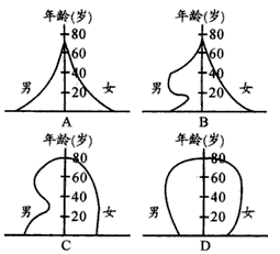 4、单选题 下图是某四国人口金字塔示意图,回答1—4题。