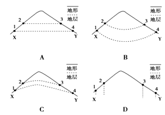 【小题1】从题干上“向斜山”的信息,就可以判断出正确的剖面图。答案选B。